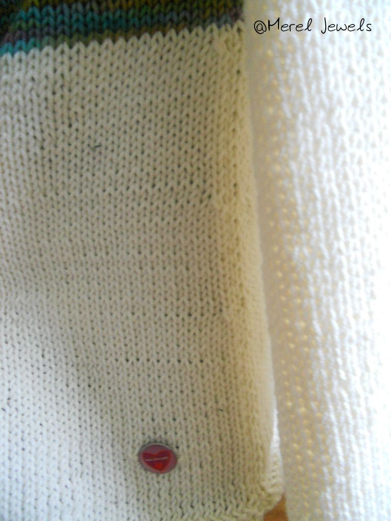 First I bought the 7 buttons with the butterflies. Then I thought that the Bucilla hand-dyed yarn that just arrived would match it very nicely....then I thought of an extra color, bought the katia yarn the next day. And I used the pattern of the Ephemera cardigan with some modifications: I lengthened the sleeves with 6 inces each and instead of using a crocheted edging I knitted them.